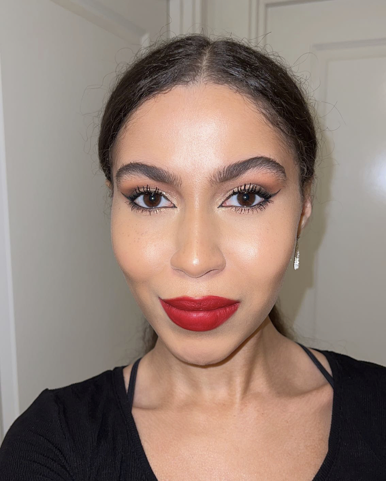 It’s easy to get carried away focusing on the skin, applying more and more makeup. But when you’re working with red as the final touch on the lips, less is always more. The final result comes out classical and almost dainty looking.